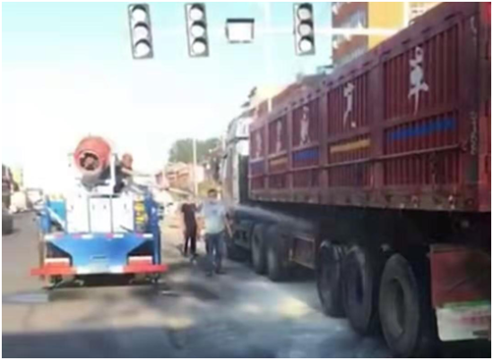7月6日早上6時(shí)40分,一輛貨車(chē)由東至西行駛到西扶超限檢測(cè)站負(fù)責(zé)的環(huán)保檢測(cè)卡點(diǎn)時(shí)輪胎突然起火,執(zhí)法人員發(fā)現(xiàn)后,立即用車(chē)載喇叭喊話(huà)提醒司機(jī)停車(chē),此時(shí)車(chē)輛正好停在值勤卡點(diǎn)紅綠燈處,一旦火勢(shì)不受控制,將給司機(jī)及周邊群眾帶來(lái)不可預(yù)測(cè)的危險(xiǎn)與損失,帶班站長(zhǎng)李建東一邊組織人員進(jìn)行救火,一邊通知站長(zhǎng)劉洪亮。得到警情后,劉洪亮站長(zhǎng)立即組織增援,同時(shí)指令張光輝、劉伯倫駕駛站內(nèi)高壓撒水車(chē)迅速趕往事故現(xiàn)場(chǎng),經(jīng)過(guò)共同努力,著火處被撲滅,避免了一場(chǎng)火災(zāi)事故的發(fā)生。事后,貨車(chē)司機(jī)十分感動(dòng),拉著執(zhí)法人員的手深表謝意。