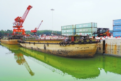 7月20日,周口中心港一派繁忙景象。該港口是我省規(guī)模最大、靠泊能力最強(qiáng)的內(nèi)河港口。隨著公、鐵、水、空“四位一體”立體綜合交通格局的逐步形成,周口中心港將成為豫貨出??凇⑦B接長三角經(jīng)濟(jì)圈的“橋頭堡”,也將成為中原地區(qū)深度融入“一帶一路”建設(shè)、通江達(dá)海的重要節(jié)點(diǎn)。河南日報(bào)記者 陳更生 王錚 攝