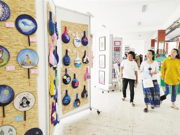 鄲城縣數(shù)萬名小孩子的暑假是多彩的,特色補(bǔ)習(xí)班、校園文化節(jié)、外出游山水等等,特別是校園文化節(jié),讓孩子們?cè)谑止ぶ谱?、音樂、圖畫、舞蹈等方面各顯所長(zhǎng),并讓孩子們開闊了眼界。兩圖均為鄲城縣第二實(shí)驗(yàn)小學(xué)校園文化節(jié)現(xiàn)場(chǎng)。記者 徐松 攝