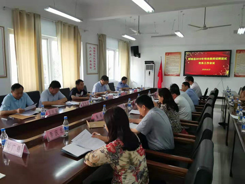 8月23日,鄲城縣召開2019年特崗教師招聘面試考務(wù)工作會議,明確分工,強化責(zé)任,確??紕?wù)工作順利??h政府辦公室副主任楊培爭、縣紀委常委趙天位、縣編辦主任王民仰、縣教體局局長劉現(xiàn)營、縣人社局局長劉自忠、縣公安局治安大隊教導(dǎo)員葛染,以及面試工作組全體人員參加會議。