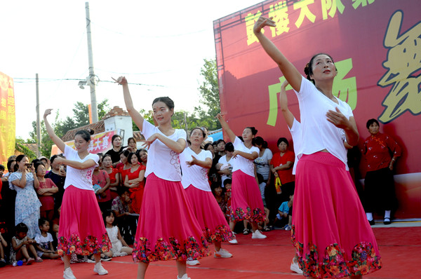 為了把節(jié)目辦的出彩,村民們非常認(rèn)真,不僅動(dòng)員老少婦女們參與排練,晚上吃過(guò)飯?jiān)诖暹呉槐楸榈木?,直到能熟練上?chǎng),另外,他們還請(qǐng)來(lái)劇團(tuán)的演員當(dāng)評(píng)委,每場(chǎng)精彩的演出,博得大伙叫好聲。評(píng)委也被邀上臺(tái) ,臨場(chǎng)助興,多才多藝的村民也見(jiàn)縫插針地表演一番才藝,一場(chǎng)村頭廣場(chǎng)舞大賽有聲有色,笑聲連連,展示了農(nóng)民在奔小康道路上的自信、幸福和執(zhí)著。