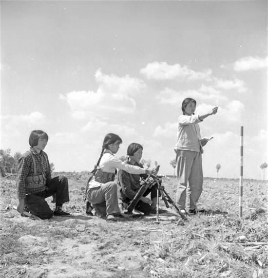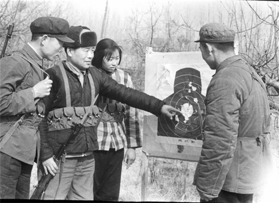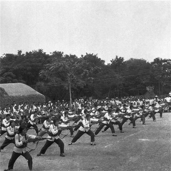 全民皆兵作為貫穿在毛澤東時代的一個最具中國特點的社會景觀,留下了許多值得回味的畫面。廣大農民和工人亦兵亦民、亦工亦兵,拿起鋤頭是莊稼漢,走進車間是工人,拿起槍桿就是一個兵。民兵訓練在正規(guī)軍人的指導下利用農閑時間,采取小型、就地、分散的方法進行,主要訓練課目有隊列、刺殺、步槍射擊、投手榴彈、簡易單兵戰(zhàn)術、站崗放哨等。