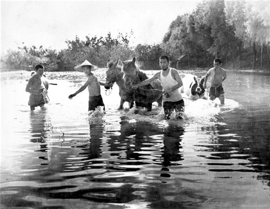 “75·8”大洪水西華、項城受災最為嚴重,災區(qū)的村民把牲畜趕到大堤上。(圖片來源:劉明和)