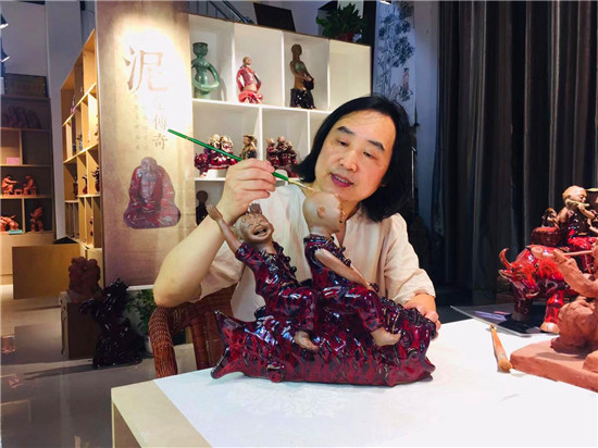 張振福鈞瓷泥塑作品《年年有余》由張振福設(shè)計(jì)、造型、上釉色、燒制,采用傳統(tǒng)的泥塑造型,線條圓潤流暢,型制古樸喜慶、大氣雄渾。瓷質(zhì)為禹州神后鈞瓷礦泥,瓷質(zhì)厚重,窯變自然豐富,以喜慶的鈞紅釉色為主色調(diào)。作品運(yùn)用夸張的手法,表現(xiàn)中原黃河岸邊的兒童騎在黃河鯉魚上,男孩牽著繩索,女孩高興地手舞足蹈,畫面極具張力,動(dòng)感十足。男孩女孩代表中華民族興旺發(fā)達(dá),黃河鯉魚代表祖國繁榮昌盛,人民富足有余。作品長39厘米、寬30厘米、高33厘米,象征21世紀(jì)家國興旺,九州飛彩。