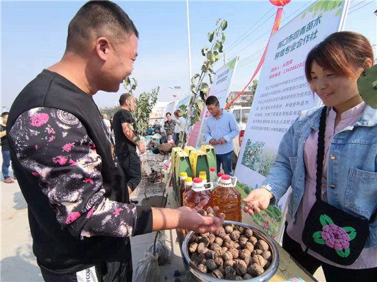 一問一答間,爽朗的笑聲響徹節(jié)日上空,農(nóng)民們喜笑顏開,傳遞出濃濃的幸福。大棗、黑木耳、小麥粉、粉條等西華縣各具特色的農(nóng)產(chǎn)品紛紛亮相,除了展示各自的“增收實力”,也展示出幾年來發(fā)展農(nóng)業(yè)特色經(jīng)濟的豐碩成果?!罢钆_,農(nóng)民唱戲,每年一度的農(nóng)民豐收節(jié)既是農(nóng)民歡樂的節(jié)日,也是展銷農(nóng)產(chǎn)品的紐帶平臺,今天我們奉母鎮(zhèn)展示了本地原生態(tài)粉條和純糧美酒,希望借助豐收節(jié)機遇,拓寬銷路實現(xiàn)農(nóng)民增收。”西華縣奉母鎮(zhèn)黨委書記陳鵬告訴記者。