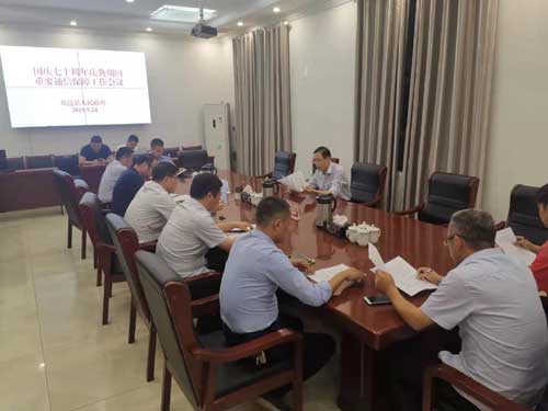 9月24日晚上,鹿邑縣政府副縣長翟杰組織召開國慶七十周年慶典期間重要通信保障工作推進會。會議迅速傳達學習了周口市政府有關(guān)加強通信保障的通知精神,對有關(guān)工作進行安排部署。