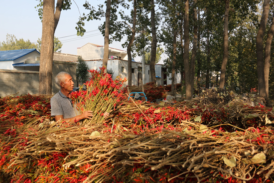 此時(shí),正值西華縣秋收時(shí)節(jié),玉米、花生、大豆、谷子、辣椒、柿子、大棗、甘蔗等農(nóng)作物應(yīng)季而熟。滿眼的金色、紅色與田間地頭緊張運(yùn)作的農(nóng)業(yè)機(jī)械和農(nóng)民忙碌的身影構(gòu)成一幅美不勝收的秋收畫卷。
