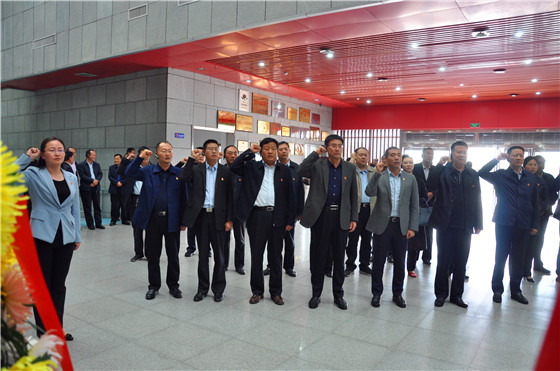 田林、張峰、李德來、孫培忠等首先來到吉鴻昌銅像廣場,瞻仰英雄英姿,追憶將軍的浩然正氣和愛國情懷。步入展 廳,縣委常委、組織部長劉和輝帶領(lǐng)參觀人員重溫入黨誓詞。