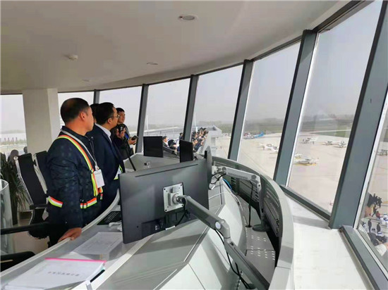 10月29日上午,周口西華通用機場正式啟用。在機場工作人員的帶領(lǐng)下,記者來到機場運行中心塔臺。塔臺可以環(huán)視機場全貌。機場運行中心是機場指揮運行的中樞,對空指揮系統(tǒng)、氣象自動觀測系統(tǒng)、ADS-B監(jiān)視系統(tǒng)和機場全景監(jiān)控系統(tǒng)均在運行中心塔臺內(nèi)。