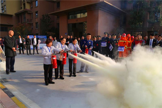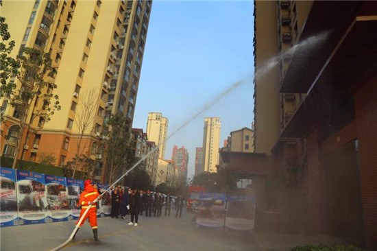 當(dāng)日下午,高磊向參會(huì)人員演示并講解了滅火器的使用方法,并現(xiàn)場(chǎng)邀請(qǐng)社區(qū)干部和物業(yè)公司相關(guān)負(fù)責(zé)人員實(shí)際體驗(yàn)滅火器的使用。隨后,在建業(yè)森林半島小區(qū)開展了消防演練活動(dòng)。