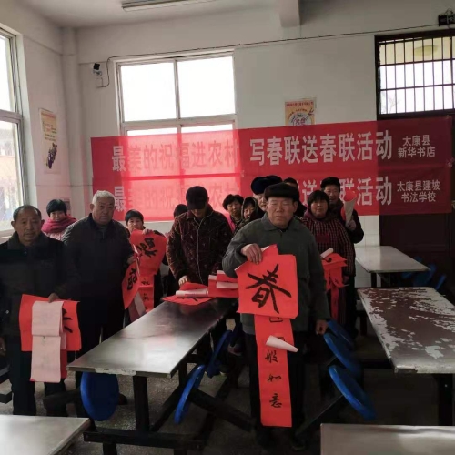 1月22日,在中原出版?zhèn)髅郊瘓F(tuán)公司開(kāi)展的“最美讀書(shū)聲”最美的祝?!捌哌M(jìn)” 活動(dòng)精神指導(dǎo)下,太康縣新華書(shū)店有限公司走進(jìn)太康縣建南社區(qū)開(kāi)展“書(shū)寫(xiě)春天 溫暖社區(qū)”迎新春活動(dòng),為社區(qū)居民寫(xiě)春聯(lián)、送春聯(lián)。
