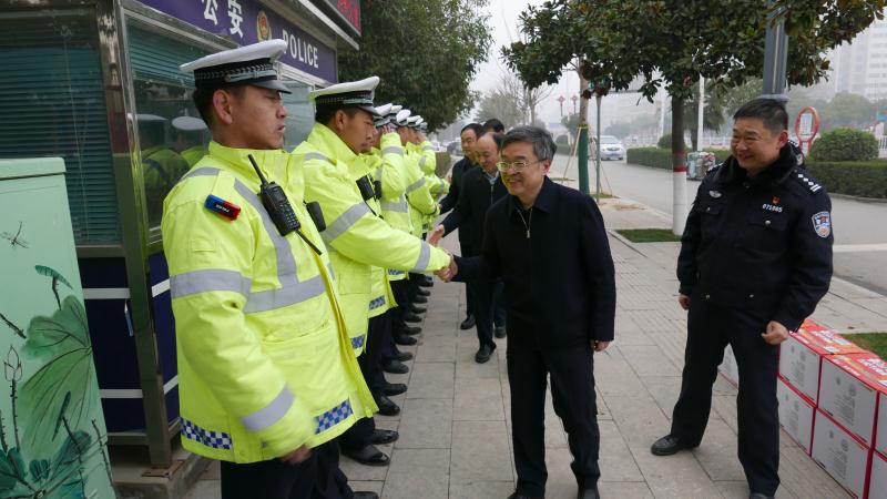 慰問中,皇甫立新、劉國慶一行首先來到縣交警大隊(duì)城區(qū)中隊(duì)五岔路口執(zhí)勤點(diǎn),同正在執(zhí)勤的交通民警一一握手,并代表縣委、縣政府向交警大隊(duì)全體民警、協(xié)警一年來付出的努力和辛苦表示感謝和問候,囑咐他們要注意安全,保重身體。在詳細(xì)了解了春節(jié)期間治堵保暢工作情況匯報后,皇甫立新對交警大隊(duì)全體民警和輔警在春節(jié)期間放棄和家人團(tuán)聚,舍小家顧大家,堅守在道路交通安全管理崗位的工作態(tài)度,以及主動作為,敢于擔(dān)當(dāng),無私奉獻(xiàn)、任勞任怨的工作作風(fēng)給予高度肯定。并希望大家在春節(jié)期間,繼續(xù)發(fā)揚(yáng)吃苦耐勞的精神,全力做好道路安全保障工作,確保春節(jié)期間全縣道路交通安全暢通,讓全縣人民度過一個平安、祥和的春節(jié)。同時,縣交警大隊(duì)要進(jìn)一步做好執(zhí)勤民警后勤保障及防寒保暖工作,加強(qiáng)人員輪換上崗,切實(shí)保障公安交警切身利益,解決他們的后顧之憂。