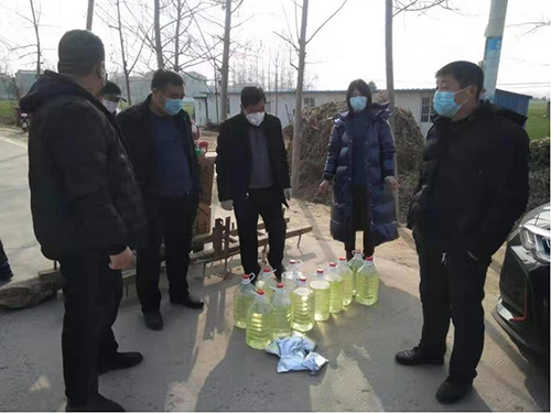 2月3號向淮陽區(qū)黃集鄉(xiāng)大李行政村【貧困村】捐贈84消毒液100斤,84消毒液片5000片,酒精一桶,口罩200個。2月4號向淮陽區(qū)城關(guān)鎮(zhèn)政府捐贈84消毒液600斤,消毒片5000片。