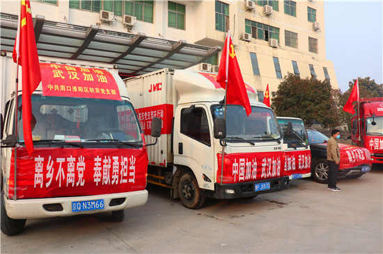 2月4日,隨著一輛輛裝滿(mǎn)物資的汽車(chē)緩緩駛?cè)胫芸?,周口市淮?yáng)區(qū)駐外流動(dòng)黨員黨支部的一場(chǎng)捐款捐物活動(dòng)如期進(jìn)行。