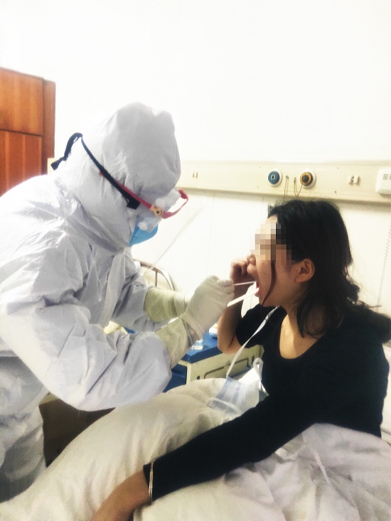 “第一次給疑似病人采集咽拭子時,說實話,難免有點緊張。病人張大嘴巴,棉簽剛一伸進(jìn)去,他就干嘔起來,然后猛烈嗆咳,連續(xù)兩次才完成采樣?!焙粼趧倓偨Y(jié)束一例標(biāo)本采集后說:“現(xiàn)在,我都是下手又快又準(zhǔn),避免病人干嘔和嗆嗽?!?/p>