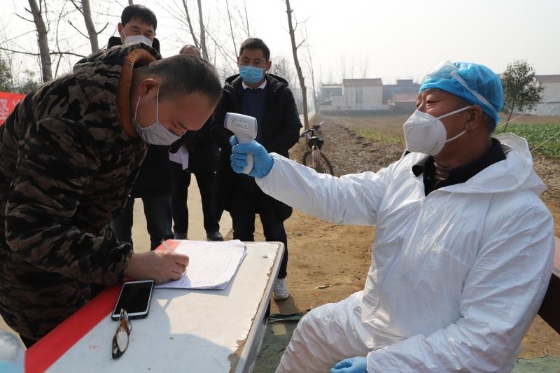 起初,苑統(tǒng)俊配合村干部在村里宣傳疫情防控政策、方法,1月25日,我省啟動(dòng)一級應(yīng)急響應(yīng),港區(qū)迅速做出響應(yīng),在轄區(qū)內(nèi)各個(gè)村莊社區(qū)設(shè)置疫情監(jiān)控點(diǎn),限制人員流動(dòng),全天候監(jiān)測進(jìn)出人員身體狀態(tài)。苑統(tǒng)俊擔(dān)起監(jiān)控點(diǎn)村醫(yī)的職責(zé),負(fù)責(zé)該村一至四組的疫情防控。他每天騎電動(dòng)車前往孫莊村監(jiān)測點(diǎn)值守,為過往人員測量體溫、觀察外地返鄉(xiāng)人員狀態(tài)、登記觀察正處在隔離期的從湖北、武漢返鄉(xiāng)人員體溫?cái)?shù)據(jù),為鄉(xiāng)村干部開展防控工作提供技術(shù)支持。