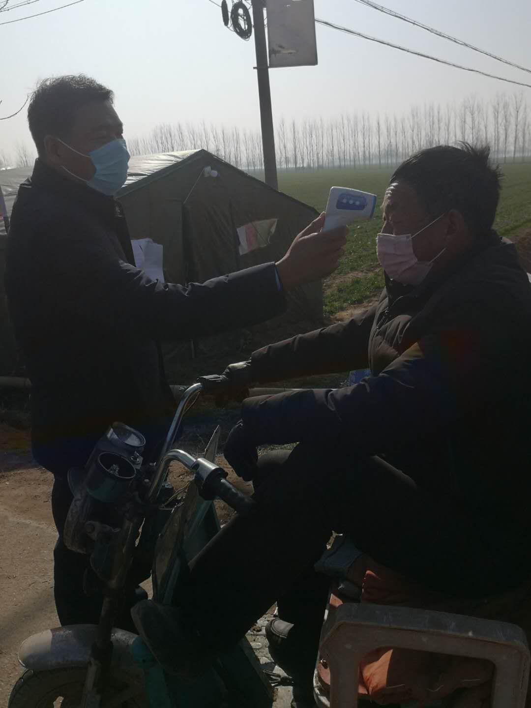 由于物資未曾到位,檢測點(diǎn)僅簡單搭了一頂四面透風(fēng)的帳篷,紀(jì)占東跟其他工作人員一起在寒風(fēng)中檢查登記出入人員、測量體溫,天氣寒冷,吃飯也只能用饅頭、泡面對(duì)付,但是內(nèi)心是火熱的。紀(jì)占東說在防控工作中,絕大部分群眾理解和支持的,有群眾在家里燒好開水給值班人員送,還有的群眾送來暖手寶、熱氣騰騰的飯菜......這些都是他工作的動(dòng)力和源泉。