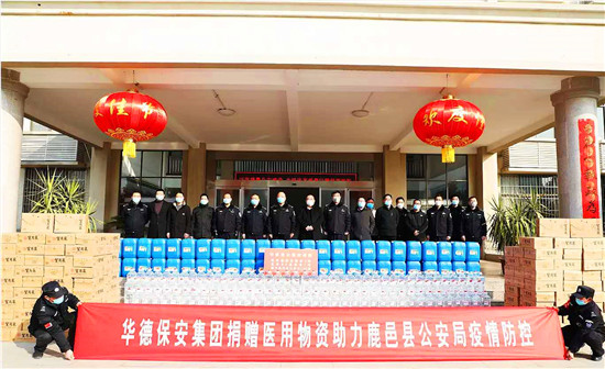 捐贈(zèng)現(xiàn)場(chǎng)鹿邑縣公安局黨委委員副局長(zhǎng)孫鑫仁、局黨委委員汲德民,向華德集團(tuán)表示由衷的感謝,高度贊揚(yáng)華德集團(tuán)作為鹿邑縣安保企業(yè)不忘初心,以實(shí)際行動(dòng)為打贏疫情阻擊戰(zhàn)貢獻(xiàn)力量,彰顯了華德集團(tuán)的責(zé)任與擔(dān)當(dāng)。