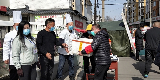 2月22日中午,川匯區(qū)小橋辦事處高莊社區(qū)疫情防控值勤卡點迎來盛世宴賓樓的大廚們,他們帶著熱騰騰的午餐前來慰問值勤人員,為抗疫一線工作者改善伙食。盛世宴賓樓負責人智廣旭告訴記者,社區(qū)疫情防控工作緊張忙碌,他好幾次看到值勤卡點的工作人員用方便面對付一日三餐,心里很感動也很難受,所以飯店決定在疫情結束之前連續(xù)贈送午餐晚餐,“讓社區(qū)卡點的同志吃好點”。