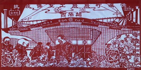 “我在為縣委林書記高鐵站送工創(chuàng)作一幅剪紙作品,你看看效果怎么樣?!苯?,西華縣奉母鎮(zhèn)剪紙藝人王銀生拿著剛剛創(chuàng)作的剪紙作品讓“疫情防控小分隊(duì)”提意見(jiàn)。