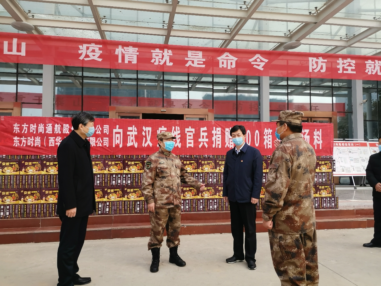 在西華縣人武部院內(nèi),東方時尚通航股份有限公司向武漢疫線官兵捐獻(xiàn)500件胡辣湯料,表達(dá)了企業(yè)對人民子弟兵的深情厚誼。王善沖代表部隊(duì)對企業(yè)慰問表示感謝。隨后,王善沖一行人又來到該縣大富城小區(qū),對堅守一線的工作人員表示慰問,鼓勵他們在疫情防控的關(guān)鍵時刻要繼續(xù)堅持、不能有放松麻痹思想。
