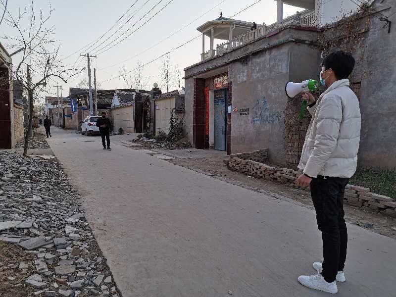 小喇叭,大溫情?!案魑淮迕瘢蠹倚履旰?,我是咱老冢鎮(zhèn)政府的工作人員,也是咱李鳳行政村的包村干部,最近新型冠狀病毒疫情形勢(shì)嚴(yán)峻,請(qǐng)各位村民盡量不要出門......”師東光每天都會(huì)帶上夜間充滿電的高音小喇叭,每天上午、下午都要在村里的大街胡同走上一圈,用小喇叭宣傳勸阻大家盡量不要出門,不要在村內(nèi)聚集扎堆聊天、打牌。連續(xù)多日,他用小喇叭傳送著大溫暖。