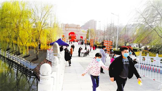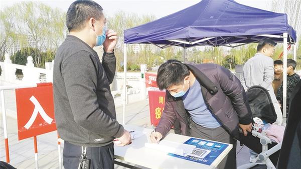 本報(bào)訊 3月10日,天氣晴朗,暖意融融,關(guān)閉一個(gè)多月的周口公園開(kāi)園迎客第二天,記者在周口公園看到,游客都戴著口罩,經(jīng)登記、測(cè)溫后依次入園,園內(nèi)秩序井然。