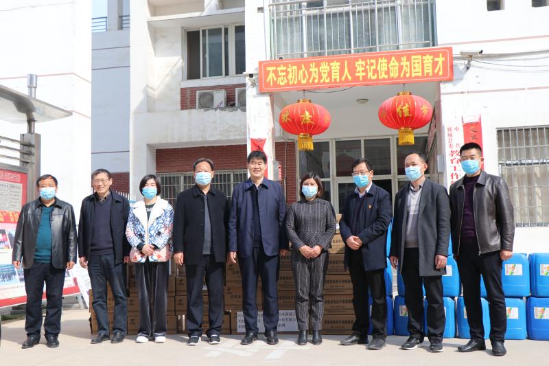 3月17日上午,河南清道夫生物科技有限公司董事長劉艷閩在城郊鄉(xiāng)黨委書記王忠、鄉(xiāng)紀檢書記韓旭東和城郊中心校校長楊洪濤的陪同下來到鄲城縣教體局,為鄲城教育系統(tǒng)捐贈一批84消毒液、消毒凝膠等抗疫物資,價值三萬余元??h教體局局長劉現(xiàn)營、政府督學王平崇、主任科員張本寶參加捐贈儀式。