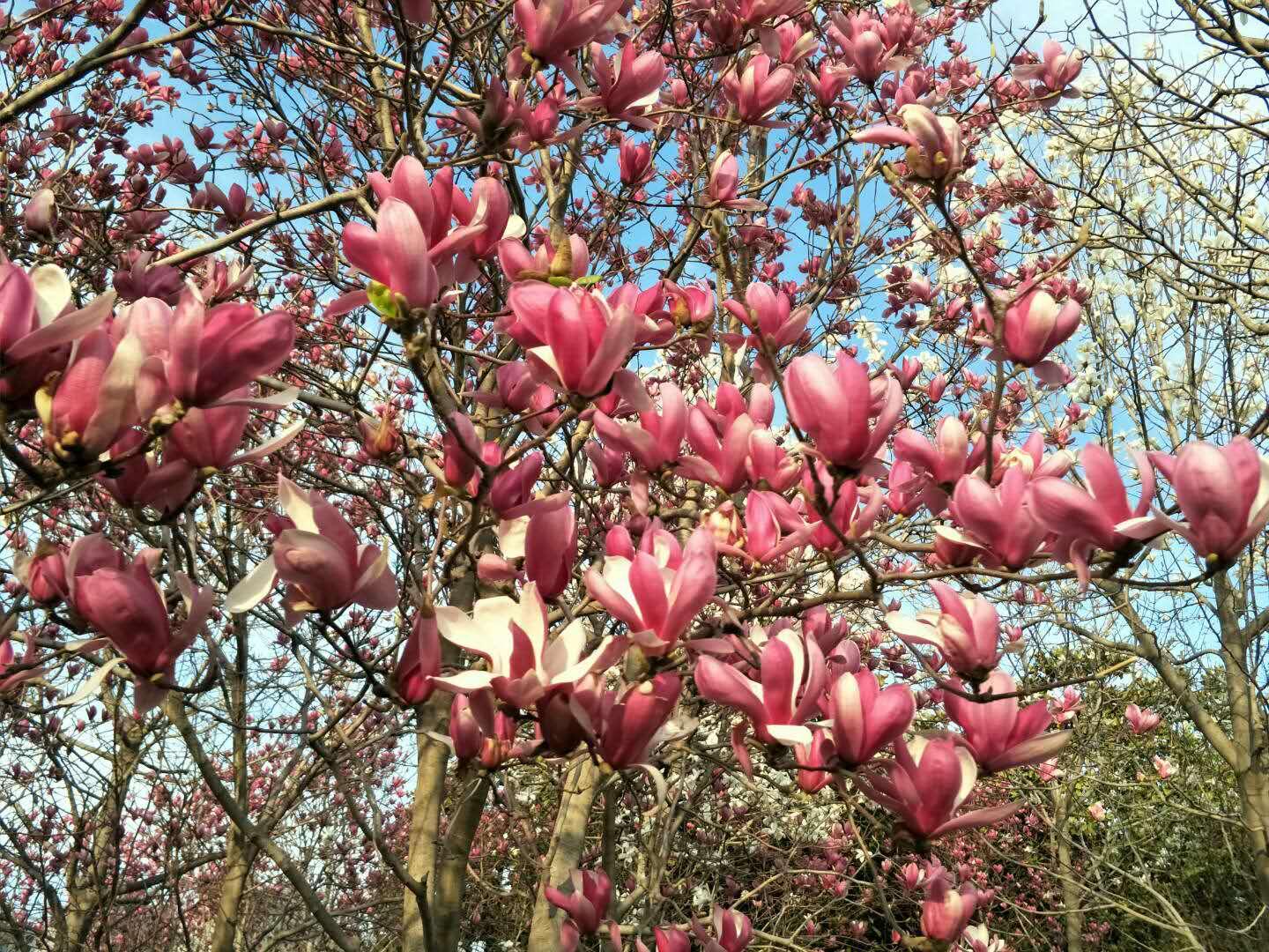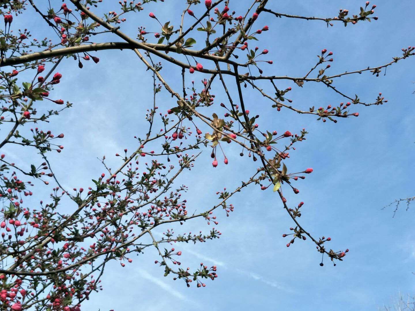紫葉李、連翹、辛夷花、海棠花、丁香花、棣棠、桃花……都熱熱鬧鬧地開著。