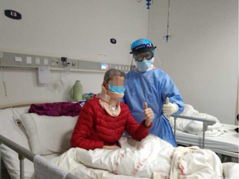 進入醫(yī)院之后,發(fā)現(xiàn)病患并沒有想象的那么可怕,而且很熱情,尤其在一系列的護理操作及心情疏導之后,很多病患為周口赴鄂醫(yī)療隊豎起了大拇指,說河南人真棒,這個時刻就是對孫慧慧最大的鼓勵。