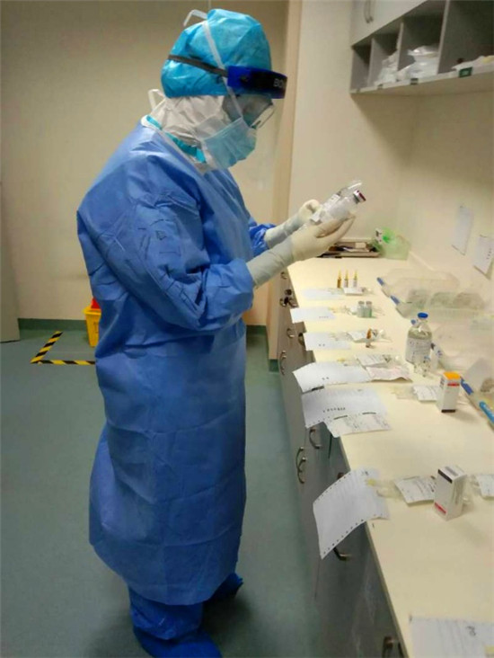 周口市中心醫(yī)院心血管內(nèi)科三病區(qū)護(hù)士孫慧慧是周口援鄂醫(yī)療隊(duì)第一個(gè)上“治療+辦公班”的護(hù)士?!翱赡苄陆?duì)的老師知道我們兩家醫(yī)院使用的是同一個(gè)數(shù)字化醫(yī)療處理系統(tǒng),我又經(jīng)常上辦公班的緣故吧?!睂O慧慧說(shuō),“簡(jiǎn)單來(lái)說(shuō),辦公班負(fù)責(zé)處理醫(yī)囑,治療班負(fù)責(zé)配兌藥物。在這里,一個(gè)人要擔(dān)負(fù)起這兩個(gè)職能。”