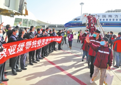 經(jīng)一個多月的艱苦奮戰(zhàn),453名健康勇士圓滿出色地完成了援助工作任務(wù),平平安安、載譽歸來!省衛(wèi)生健康委闞全程主任等領(lǐng)導(dǎo)到機場迎接,并轉(zhuǎn)達(dá)省委書記王國生、省長尹弘的親切慰問。