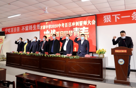 鄲城縣才源中學(xué)董事長王英表示,春回大地、暖意融融,在這個(gè)充滿生機(jī)、播種希望的季節(jié)里,卻因疫情阻斷了學(xué)子入學(xué)的腳步,但不能阻斷的是2020屆全體師生決戰(zhàn)中考的堅(jiān)定信心!百日競渡、破浪展雄風(fēng),十年磨劍、勵(lì)志凌絕頂,在距離中考僅100天的時(shí)刻,初三師生雖不能意氣風(fēng)發(fā)地相聚,但一場溫情勵(lì)志而又誠意滿滿的線上百日誓師大會(huì)迸發(fā)力量,壯志凌云,砥礪信心和決心。