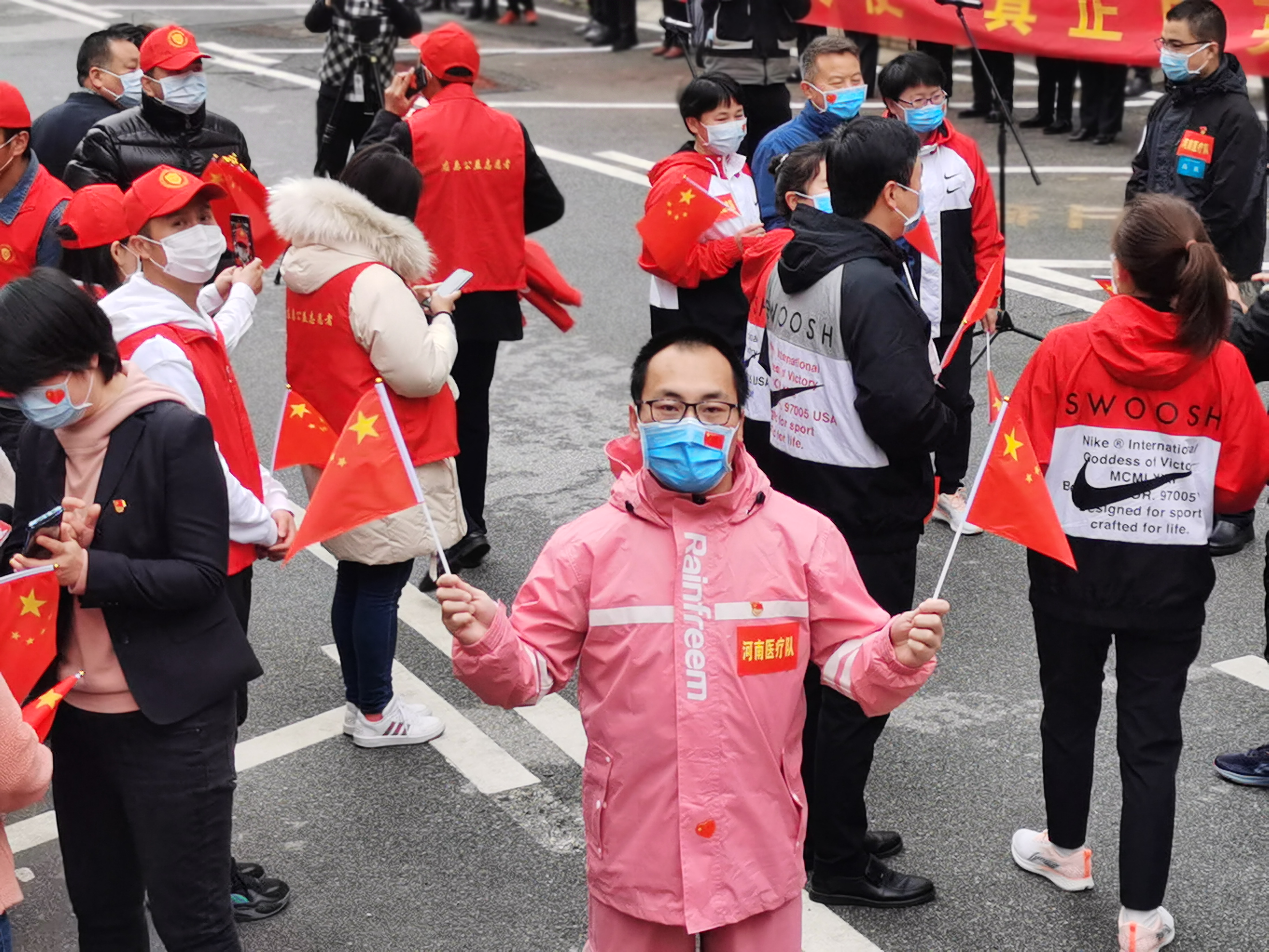 3月30日上午,在完成各自使命之后,按照河南省援鄂醫(yī)療隊(duì)統(tǒng)一安排起程凱旋。湖北街頭萬人空巷送英雄,街頭車輛長(zhǎng)鳴笛,沿街循環(huán)播放紅歌《歌唱祖國》,勝利的歌聲激蕩勝利的心情。