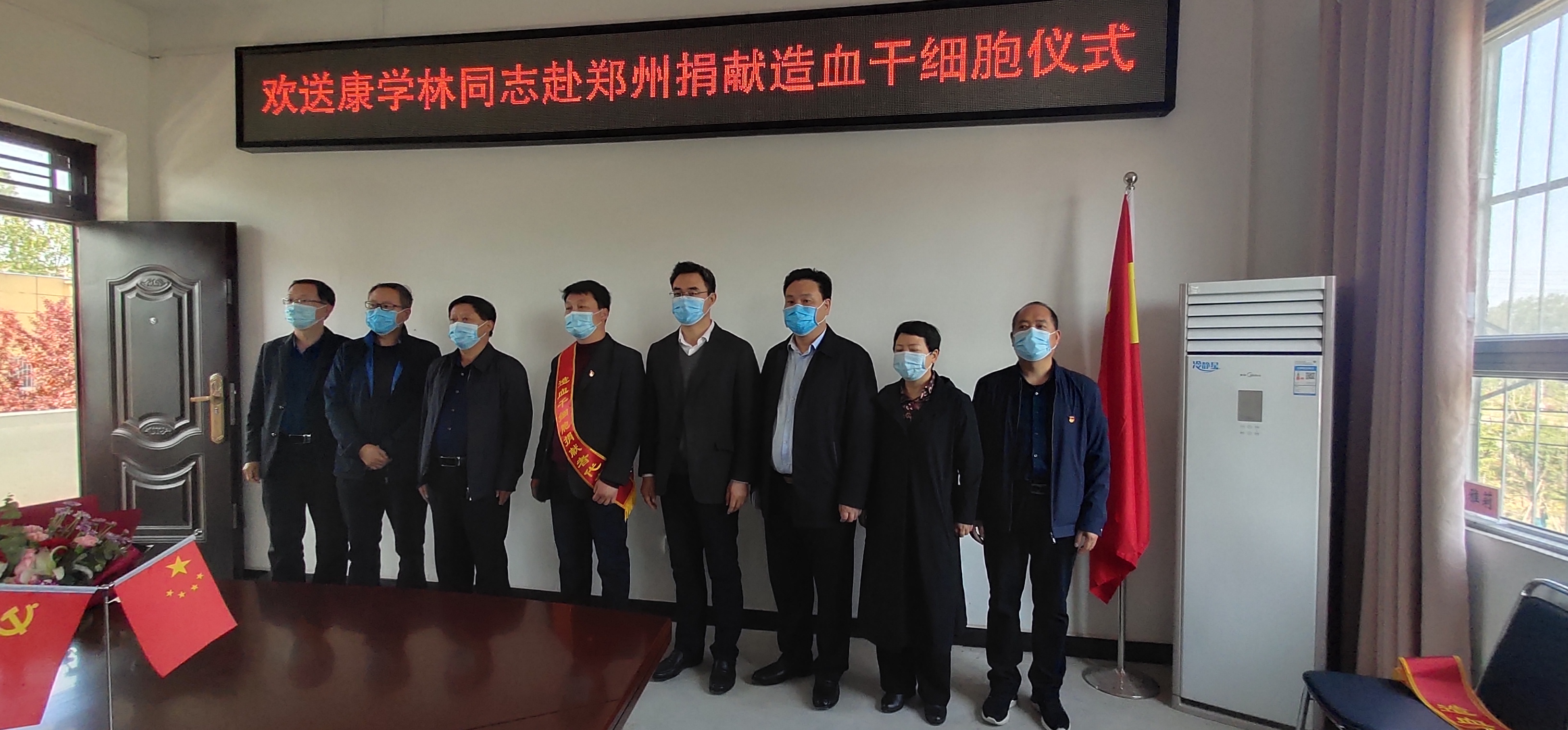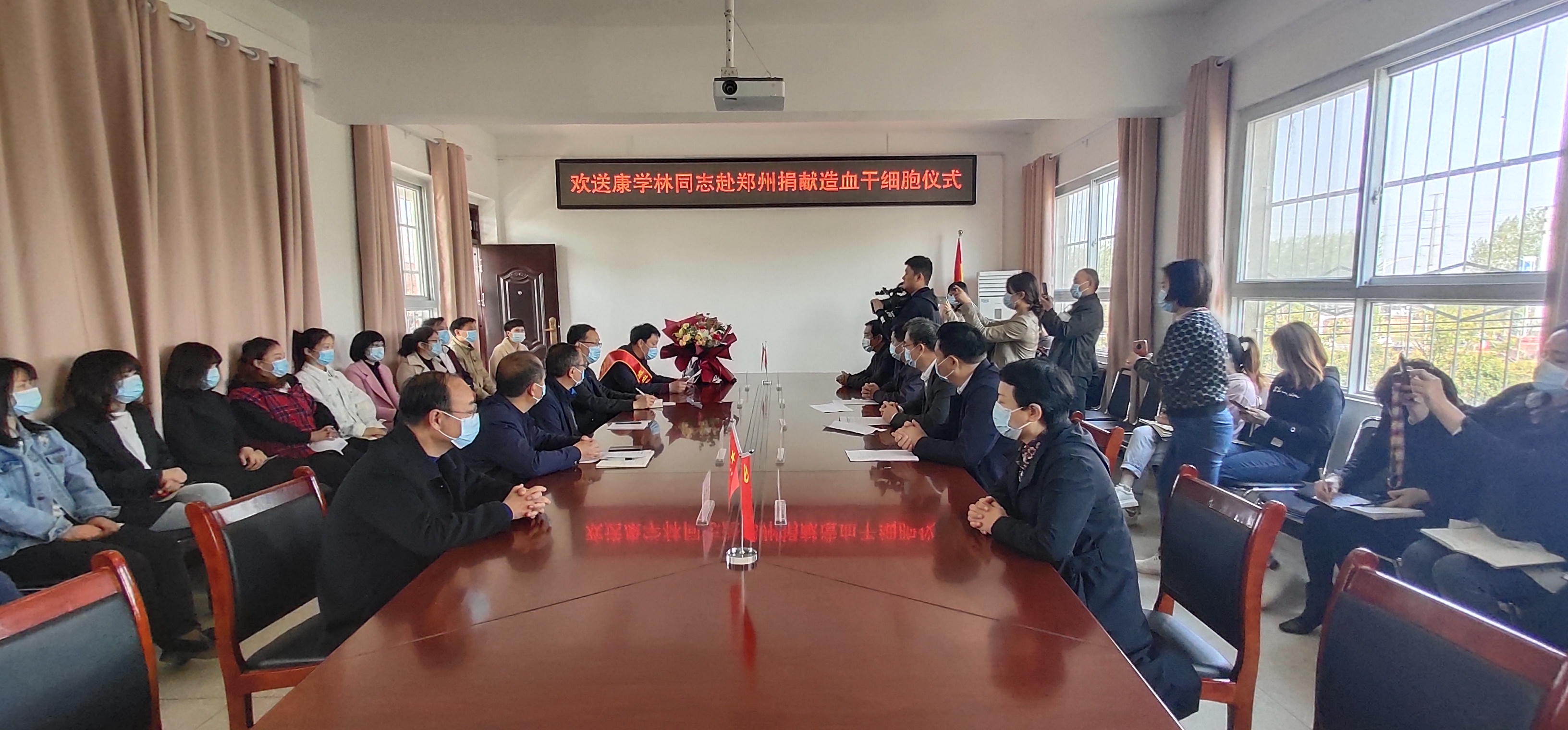 4月13日上午,在川匯區(qū)醫(yī)保局三樓會(huì)議室,我市為康學(xué)林赴鄭州捐獻(xiàn)造血干細(xì)胞舉行歡送儀式。副市長(zhǎng)、市紅十字會(huì)會(huì)長(zhǎng)秦勝軍出席。市政府副秘書長(zhǎng)唐峰,市紅十字會(huì)常務(wù)副會(huì)長(zhǎng)毛立營(yíng),市紅十字會(huì)秘書長(zhǎng)高春,川匯區(qū)副區(qū)長(zhǎng)、區(qū)紅十字會(huì)會(huì)長(zhǎng)晉瑞英,川匯區(qū)衛(wèi)健委主任任艷陽,川匯區(qū)醫(yī)療保障局黨組書記王平立,川匯區(qū)醫(yī)療保障局局長(zhǎng)欒春光,川匯區(qū)衛(wèi)健委副主任楊平云等參加。