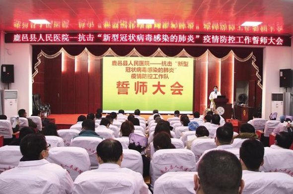 下午4時(shí),老子故里鹿邑縣,縣域醫(yī)療健康服務(wù)集團(tuán)牽頭單位、該縣規(guī)模最大的綜合性二級甲等公立醫(yī)院——縣人民醫(yī)院正在召開新冠肺炎疫情防控工作誓師會(huì)。