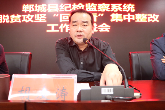 5月5日上午,鄲城縣紀委監(jiān)委召開全縣紀檢監(jiān)察系統(tǒng)脫貧攻堅“回頭看”集中整改工作推進會??h委常委、縣紀委書記、監(jiān)委主任胡友濤出席會議。