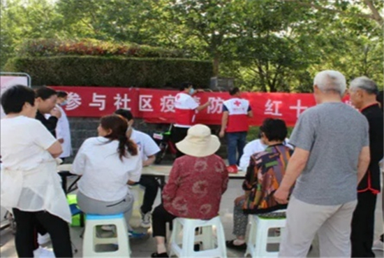 活動現(xiàn)場,區(qū)紅十字會組織志愿者和多家醫(yī)療單位醫(yī)務人員在廣場懸掛“參與社區(qū)疫情防控,紅十字救在身邊”宣傳活動橫幅,設(shè)立咨詢臺、擺放宣傳展板,活動緊貼群眾,內(nèi)容形式豐富。