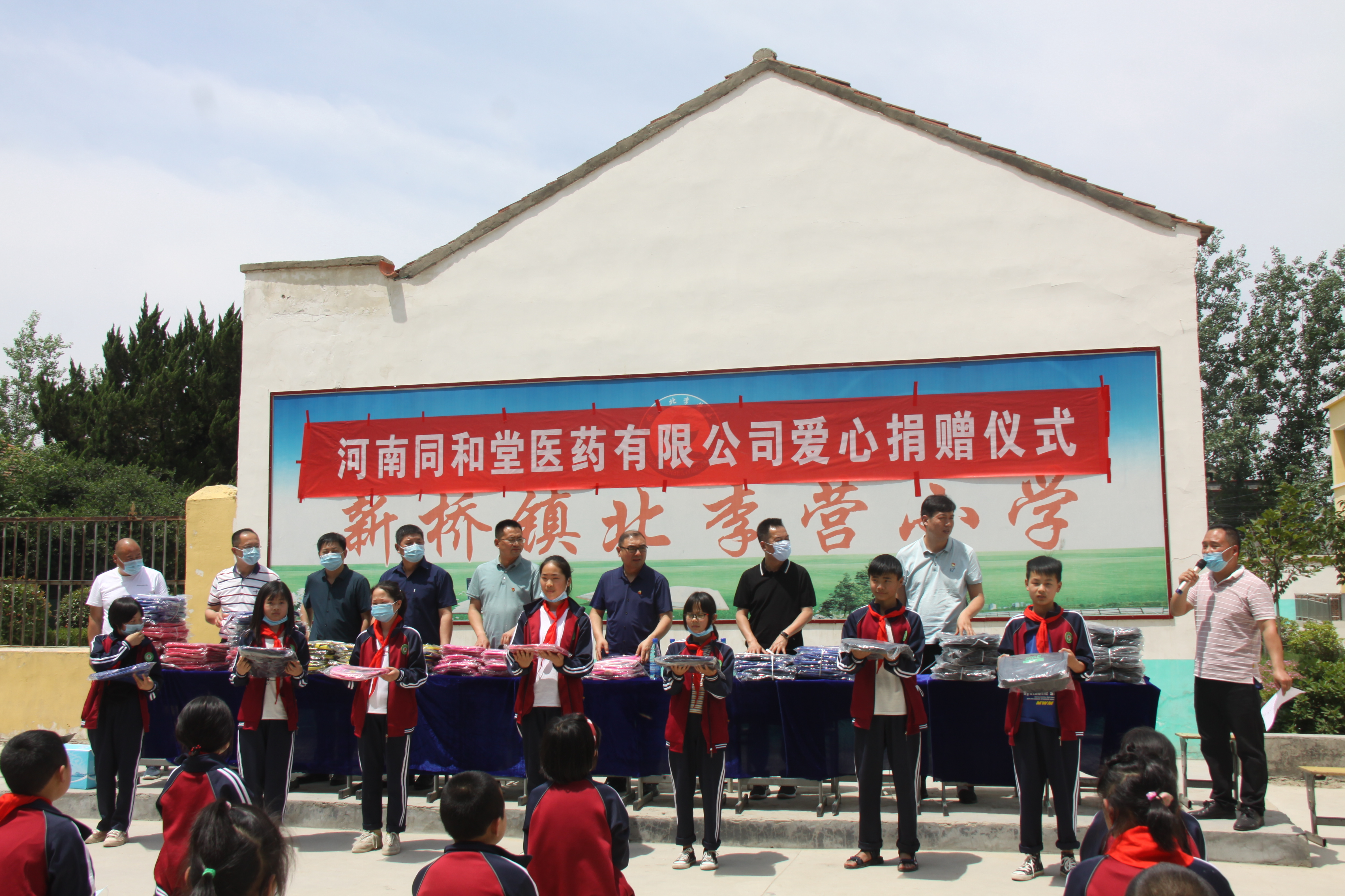 5月21日,河南同和堂醫(yī)藥有限公司與部分周口愛心人士,穿過滾滾麥浪,來到市醫(yī)保局定點(diǎn)扶貧村——項(xiàng)城市新橋鎮(zhèn)北李營行政村,為村小學(xué)的學(xué)生們送去200個書包,向他們提前送上六一兒童節(jié)的祝福。