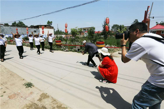 采風(fēng)期間,10多名專業(yè)攝影師奔赴奉母鎮(zhèn)前邵村、前于王村以及孝賢碑林等地,進(jìn)行實(shí)地探訪采風(fēng)。前邵村是當(dāng)?shù)赜忻膫鹘y(tǒng)村落,村里文化氛圍濃厚,先后走出10多位戲曲方面的國(guó)家一級(jí)演員。在該村,一支業(yè)余的文藝宣傳隊(duì)引起攝影家們關(guān)注的目光。大家即興表演了兩三個(gè)節(jié)目,引得攝影家們極大興趣,不停按下快門(mén)拍攝。