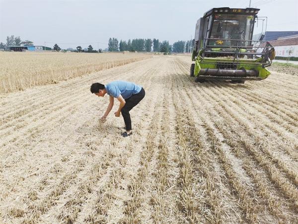 日前,我市小麥相繼進(jìn)入成熟期,田地里一片金黃,滾滾麥浪中收割機(jī)來回穿梭,農(nóng)民已經(jīng)開始收麥了。圖為5月24日上午,沈丘縣李老莊鄉(xiāng)部分麥子開始收割,飽滿的麥粒從收割機(jī)中流出,農(nóng)民的臉上綻放出笑容。