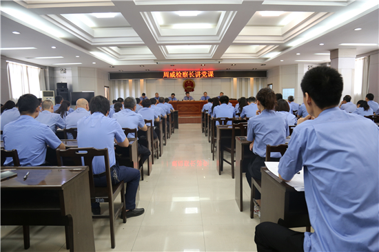 近日,項(xiàng)城市人民檢察院黨組書記、檢察長(zhǎng)周威為全院干警講“強(qiáng)化四個(gè)意識(shí),推進(jìn)機(jī)關(guān)黨建上水平”專題黨課。
