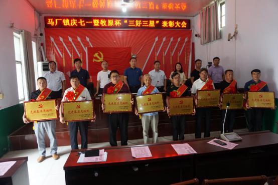 會(huì)上,馬廠鎮(zhèn)黨委副書(shū)記曹云峰宣讀了《馬廠鎮(zhèn)黨委關(guān)于表彰2019年度先進(jìn)基層黨組織和牧原杯出彩馬廠人“三好三星”的決定》,在紀(jì)念建黨99周年之際,為弘揚(yáng)典型、表彰先進(jìn),經(jīng)鎮(zhèn)黨委研究決定,對(duì)2019年度取得顯著成績(jī)的林洼、前何等16個(gè)先進(jìn)基層黨組織;喬可可等19名好媳婦;王慧琴等20名好婆婆;王娜等12名好鄉(xiāng)賢;孫東旗等16名幫扶之星;宋桐等15名脫貧之星;葛芹芹等16名抗疫之星予以表彰。
