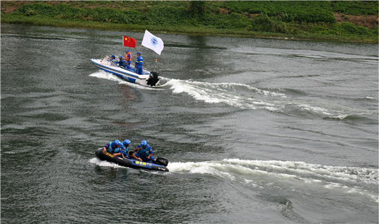 上午9時(shí),隨著田林“開始演練”命令的下達(dá),60人組成的搶險(xiǎn)突擊隊(duì),緊張有序開展了五個(gè)科目的演練。突擊隊(duì)員通過巡堤查險(xiǎn),觀察堤坡及堤腳附近有無滲水、管涌、裂縫、滑坡、漏洞等險(xiǎn)情。發(fā)現(xiàn)險(xiǎn)情后,迅速采取導(dǎo)滲、截滲等搶險(xiǎn)措施,確保險(xiǎn)情得到及時(shí)、正確、有效的處理或控制。發(fā)現(xiàn)落水人員,四艘沖鋒舟分工明確,立即前往落水地點(diǎn)進(jìn)行救助。