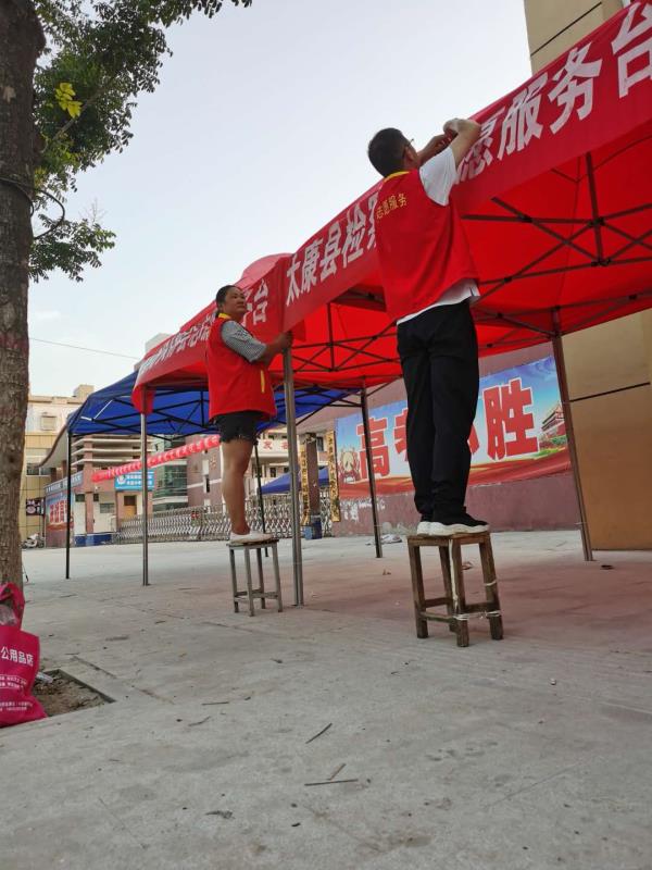 6日下午3時(shí)許,鄭雪艷和王作宇二人被安排到太康縣華夏外國語高考考點(diǎn)負(fù)責(zé)為考生和家長搭建11個(gè)茶水棚?!跋挛?點(diǎn)正是一天中最熱的時(shí)候,考點(diǎn)附近也沒有樹蔭。”太康縣網(wǎng)信辦副主任高一麟回憶說,要在天黑之前搭建好11個(gè)茶水棚,對于鄭雪艷和王作宇兩人來說并非易事。