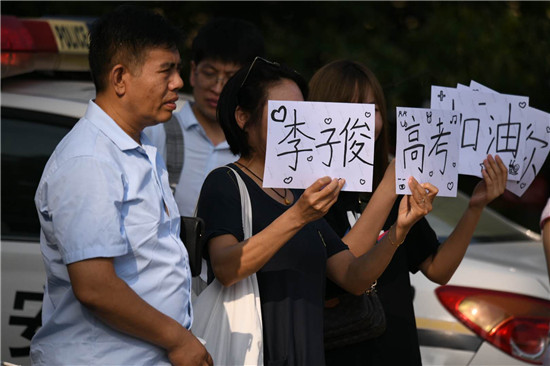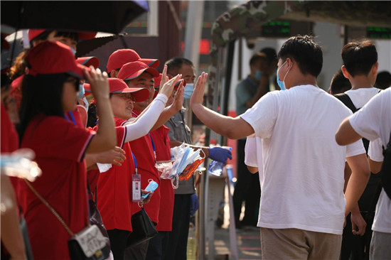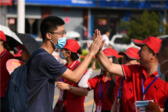 祝愿學(xué)子們考出好成績(jī),今夏實(shí)現(xiàn)金榜題名,是全社會(huì)共同的心聲。7月7日上午8點(diǎn)多,2020年高考開啟神圣時(shí)刻,和往年不同的是,因疫情影響,學(xué)子們帶著口罩入場(chǎng),作為外援的家長(zhǎng)們,更是悉數(shù)趕到考場(chǎng)外,為孩子們加油!而辛勤一年的老師們,更顧不上歇一會(huì)兒,也趕到考場(chǎng)外,為學(xué)生擊掌打氣,構(gòu)成周口考場(chǎng)外動(dòng)人的圖景。圖為市一高考場(chǎng)外的家長(zhǎng)們舉著加油的牌子,為孩子助威!一高的老師穿上小紅馬甲,當(dāng)志愿者,和進(jìn)場(chǎng)的學(xué)生擊掌助威!