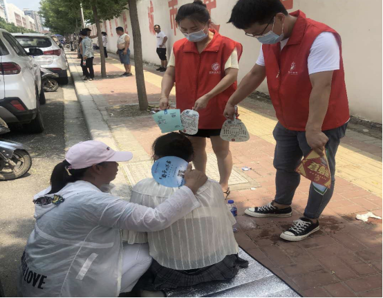 在各考點志愿活動現(xiàn)場,志愿者們早早搭起遮陽帳篷,擺好桌子、礦泉水,防暑應(yīng)急藥品等用品,為考生和家長提供休息場所,在炎熱的夏日里為他們送上一份清涼和安心。同時,他們還維持考點周邊市容環(huán)境的整潔有序,對于大聲喧嘩等不文明行為及時勸阻;協(xié)助交警疏導交通,減少道路噪音對考試的影響,確保道路交通安全有序。期間,陸續(xù)有家長及考生前來咨詢就診,志愿者們熱情接待,為其測量血壓,提供礦泉水、解暑藥品等,得到家長及考生的一致好評。