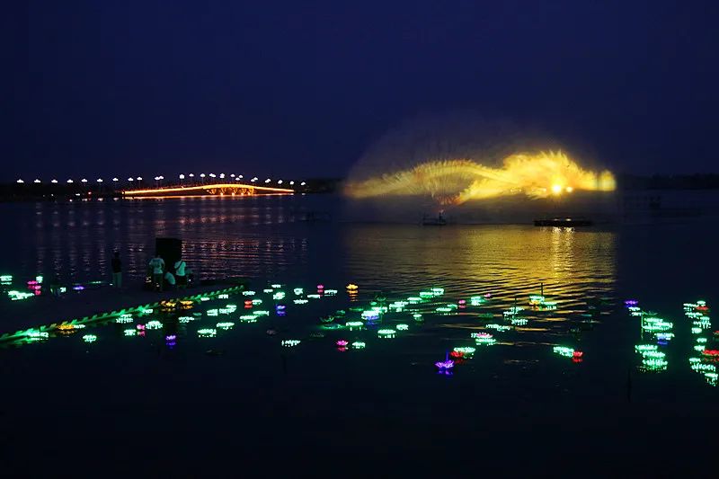 隨后,各位領導和嘉賓及數以千計的群眾觀看了精彩的文藝演出和流光溢彩、聲光兼具的全息水幕燈光秀。