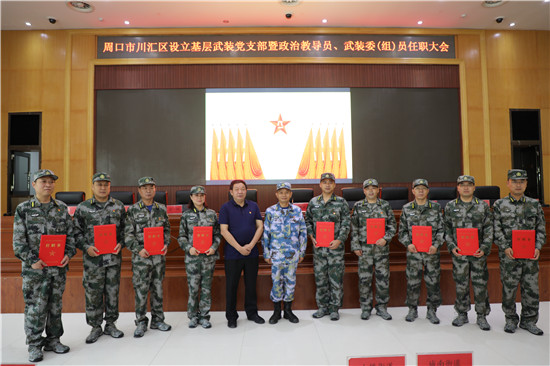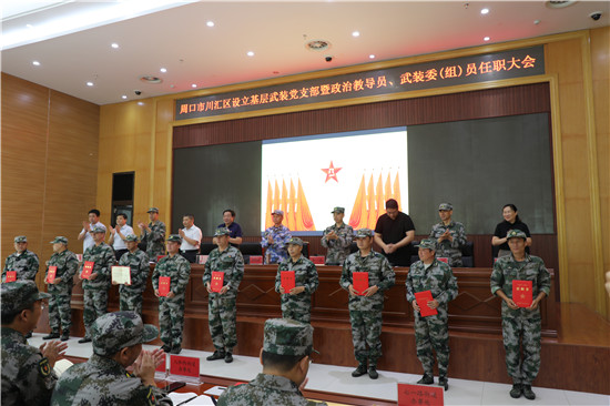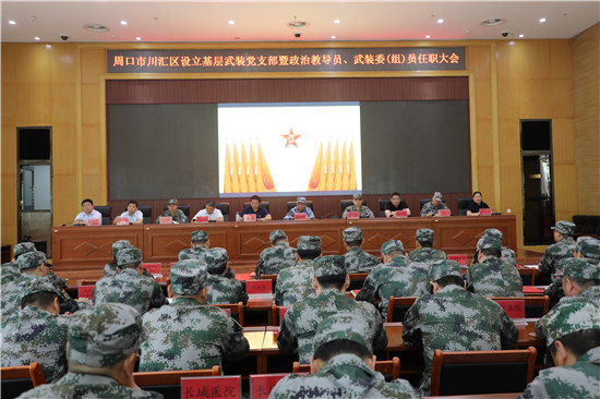 黨管武裝建設(shè)國防,軍民攜手共筑長城。為健全武裝工作組織領(lǐng)導(dǎo)體系為推動國防動員和后備力量建設(shè)在基層末端落實(shí),7月16日上午,周口市川匯區(qū)召開基層武裝黨支部暨政治教導(dǎo)員、武裝委(組)員任職大會。周口軍分區(qū)司令員湯維政,區(qū)委書記、區(qū)人武部黨委第一書記李宗喜,市委組織部處級干部宋陽,區(qū)人武部政委高新傳、部長陳繼芳及城鄉(xiāng)一體化示示范區(qū)、經(jīng)濟(jì)開發(fā)區(qū)、港口物流產(chǎn)業(yè)聚集區(qū)等有關(guān)負(fù)責(zé)同志參加了大會。會上設(shè)立了18個基層武裝黨支部,任命了15名基層武裝部政治教導(dǎo)員、20名村(社區(qū))武裝委(組)員任職命令,武裝部政治教導(dǎo)員、武裝預(yù)建黨支部書記和兼職武裝委(組)員代表先后作了履職承諾發(fā)言,湯維政等為新任命的人員頒發(fā)了任職證書。