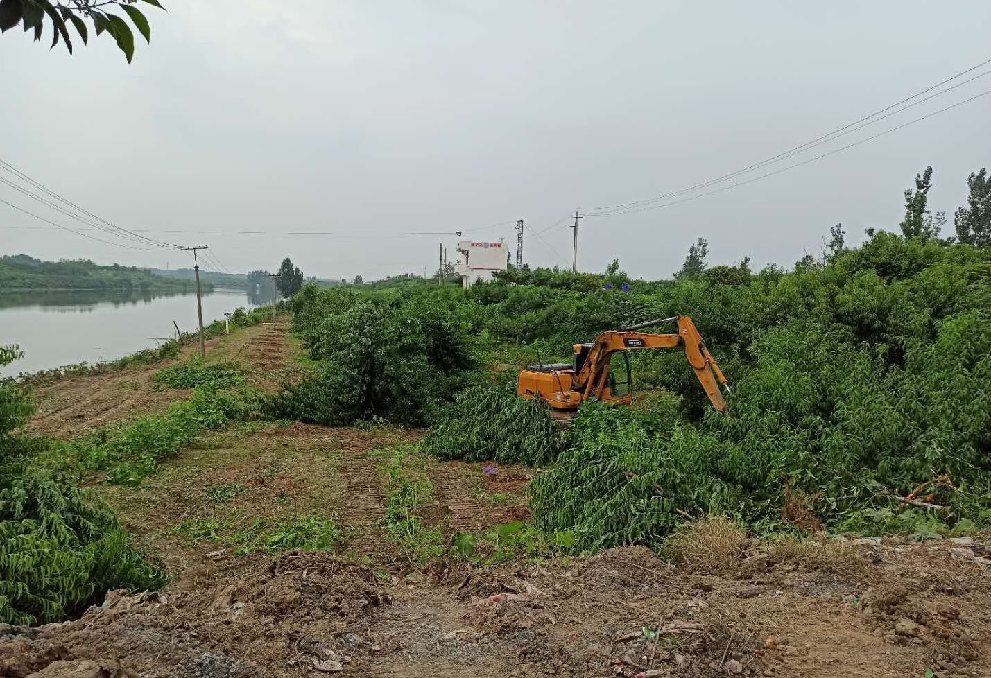 同時,該縣以《水法》《防洪法》《河道管理條例》等法律法規(guī),以及中共中央辦公廳、國務院辦公廳《關(guān)于全面推行河長制的意見》《河南省全面推行河長制工作方案》《河南省總河長令(第2號)》《河南省持續(xù)開展河湖“清四亂”行動方案》等重要文件為依據(jù),對河道管理范圍內(nèi)“四亂”問題進行依法清理整治。潁河黃橋閘上下游灘地存在阻水林木,屬“亂占”行為。黃橋鄉(xiāng)政府與河道管理部門實地查看,制定清理方案,劃出清理范圍線,按照潁河防洪要求和管理實際情況,對潁河保證水位線以下高桿作物,樹木全部清理,確保防洪安全。目前,按照清理范圍,潁河黃橋管理段日出動挖掘機械四臺,已清理桃樹170棵、楊樹40棵、梧桐樹110棵、雜樹7畝,清理河道長1200米。